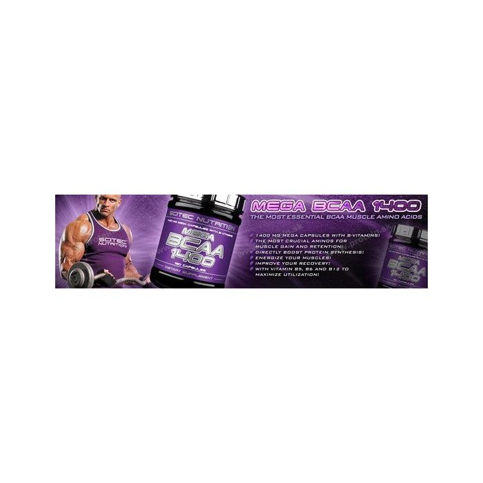 Mega BCAA 1400 je suplement esenciálnych aminokyselín BCAA v kombinácii s vitamínmi B. Účinne a rýchlo regeneruje svalstvo, zvyšuje syntézu bielkovín a redukuje únavu po cvičení. Doprajte svojim svalom BCAA z dielne Scitec Nutrition!