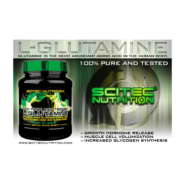 L-Glutamín je 100% čistý glutamín, ktorý je najčastejšie sa vyskytujúcou aminokyselinou v svalovom tkanine a vytvára antikatabolický stav. Ten je pre regeneráciu a zníženie rozpadu svalových vlákien kľúčový. Glutamín navyše podporuje produkciu rastového hormónu a odporúča sa užívať mužom aj ženám, ktorých telo je vystavované stresu v podobe namáhavých tréningov.
