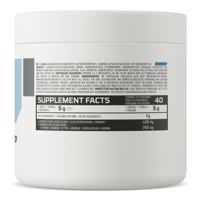 A-AKG alebo arginín alfa-ketoglutarát je zdrojom arginínu, ktorý sa zúčastňuje metabolizmu oxidu dusnatého. Jeho vyššia hladina v organizme je spojená s efektívnejším zásobením pracujúcich svalov, čo by mohlo mať vplyv aj na zvýšenie výkonu. Je obohatený o taurín a vitamín B6, ktorý prispieva k uvoľňovaniu aj spotrebe energie. Navyše pomáha znížiť únavu aj vyčerpanie, čo ocenia všetci športovci, ktorí zo seba chcú na tréningu vydať maximum.