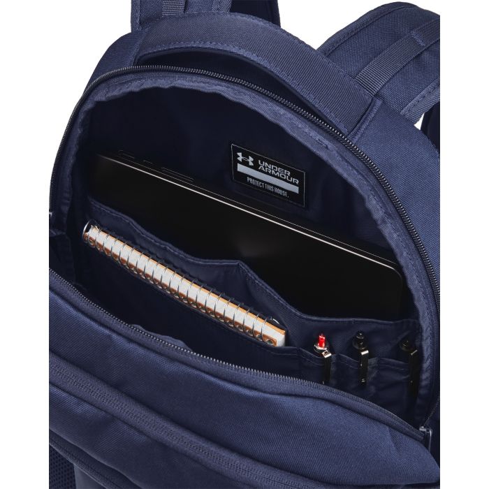 Batoh Hustle 6.0 Backpack je univerzálny ruksak vhodný do školy, práce, gymu aj na cesty. Je vybavený technológiou UA Storm, vďaka ktorej odpudzuje vodu a ochráni vaše veci pred vlhkosťou. Hodí sa tak do sychravého počasia a zvládne vietor aj dážď. Navyše je vyrobený z polyesteru, vďaka čomu sa môže pochváliť vysokou odolnosťou a dlhou životnosťou. Má objem 29 litrov, ktorý sa postará o dostatok úložného priestoru. Samozrejmosťou je samostatná úložná priehradka s mäkkou podšívkou, vhodná na 16” laptop. K tomu sa pridávajú rôzne možnosti uloženia malých predmetov, kde nájdete napríklad pútka na perá.