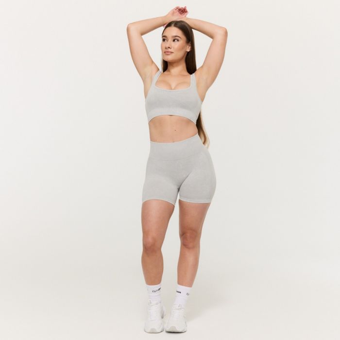 Bezešvá sportovní podprsenka Lift Grey - GymBeamModelka meria 160 cm a má na sebe veľkosť S.