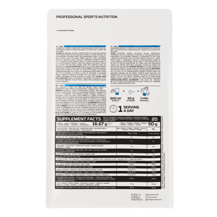 Carbo je funkčná zmes sacharidov obohatená o vybrané vitamíny, minerálne látky, beta-alanín a l-arginín
