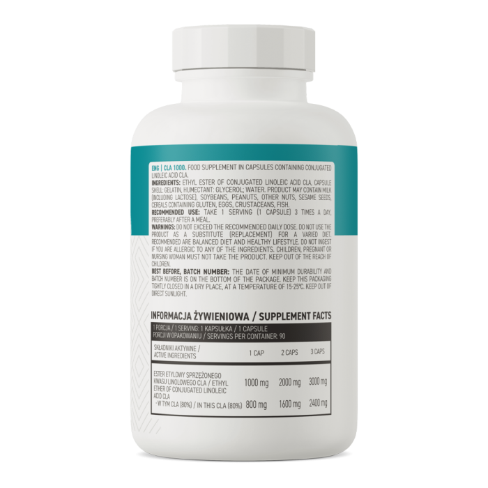 CLA je konjugovaná kyselina linolová, ktorá obsahuje 800 mg tohto obľúbeného prírodného spaľovača tuku v jednej dávke. CLA patrí medzi nenasýtené omega 6 mastné kyseliny a prispieva k udržaniu normálnej hladiny cholesterolu v krvi.