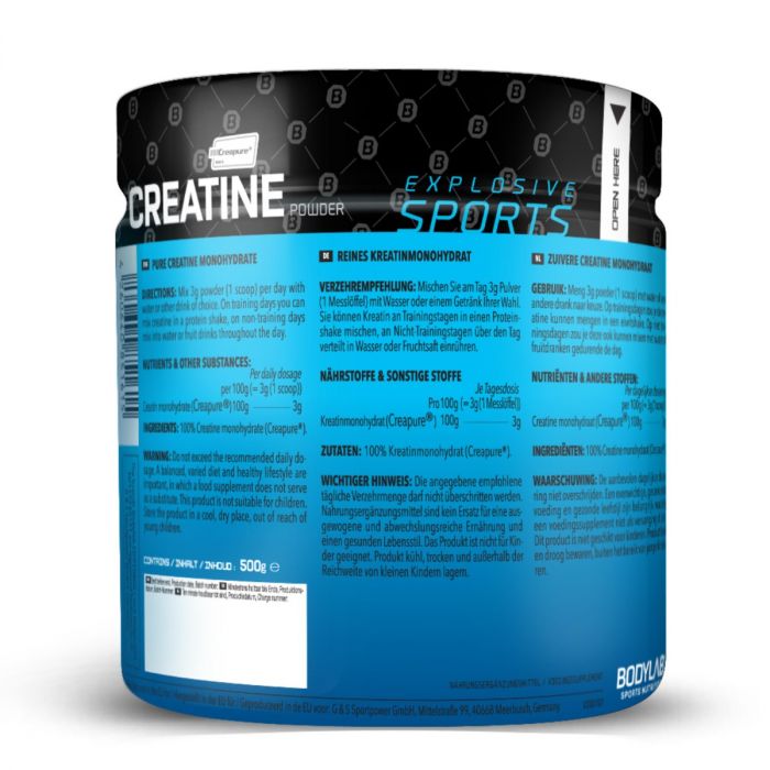 Creatine (Creapure®) je 100 % kreatín monohydrát Creapure®. Kreatín s označením Creapure zaručuje tú najvyššiu čistotu a kvalitu kreatínu. V jednej dávke obsahuje 3 g kreatínu. Ide o jeden z najpopulárnejších doplnkov pre športovcov, ktorý sa vo svete fitness používa už dlhé roky. Práve kreatín monohydrát je predmetom najväčšieho množstva výskumov, ktoré z neho robia najefektívnejší druh kreatínu. Používa sa na zvýšenie fyzického výkonu v priebehu krátkodobých, po sebe nasledujúcich dávok veľmi intenzívneho cvičenia. Podmienkou je príjem 3 g kreatínu monohydrátu každý deň, čo s týmto kreatínom hravo splníte.