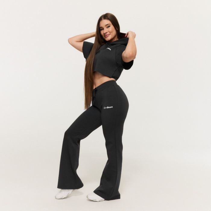 Tento model okamžite upúta pozornosť svojím moderným zvonovým strihom v štýle „flare“, ktorý sa od kolien smerom dole jemne rozširuje. Vďaka tomu lichotí postave a pôsobí veľmi žensky. Pretože nemajú vrecká, pôsobia veľmi elegantným a čistým dojmom. Navyše, tieto tepláky so stredne vysokým pásom sú vybavené praktickou elastickou gumou a sťahovacou šnúrkou, vďaka čomu si ich môžete prispôsobiť svojim potrebám.