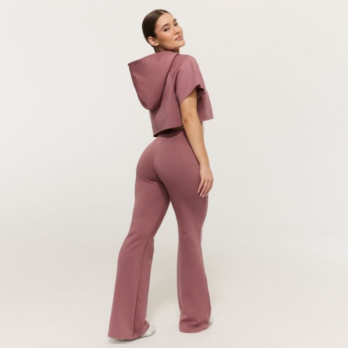 Tento model okamžite upúta pozornosť svojím moderným zvonovým strihom v štýle „flare“, ktorý sa od kolien smerom dole jemne rozširuje. Vďaka tomu lichotí postave a pôsobí veľmi žensky. Pretože nemajú vrecká, pôsobia veľmi elegantným a čistým dojmom. Navyše, tieto tepláky so stredne vysokým pásom sú vybavené praktickou elastickou gumou a sťahovacou šnúrkou, vďaka čomu si ich môžete prispôsobiť svojim potrebám.