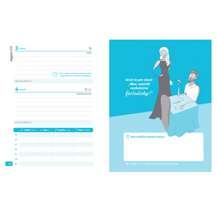 Fitness diár na rok 2019 je unikátny diár určený pre všetky ženy, ktoré milujú fitness a cvičenie ale aj pre tie, ktoré majú jednoducho predsavzatie zmeniť svoj život k lepšiemu. Diár je plný motivácie, rád a tipov pre vyváženú stravu.