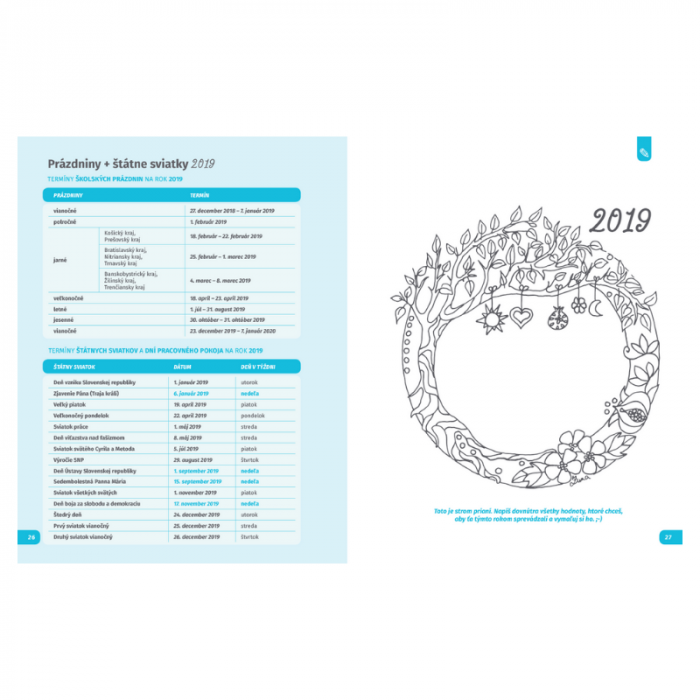 • Dostatočný priestor na zapisovanie si každodenných úloh.