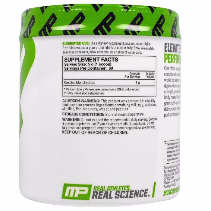 Creatine je vedecky overený kreatín monohydrát na zvýšenie sily, zlepšenie hydratácie svalov, podporu vytrvalosti a urýchlenie regenerácie. Na základe stoviek odborných štúdií bolo preukázané, že zvyšuje silu, športový výkon, intenzitu tréningu, zlepšuje hydratáciu a podporuje rast svalov. Kreatín monohydrát takisto skracuje celkový čas potrebný na regeneráciu, ako aj čas medzi jednotlivými intervalmi počas samotného tréningu. Podporuje tiež tvorbu ATP (adenosintrifosfát), hlavný zdroj energie pre svaly. Vyššia koncentrácia ATP umožňuje dlhší a intenzívnejší tréning a má za následok výrazne zvýšenie sily, zlepšenie výkonu a vytrvalosti svalovej práce.