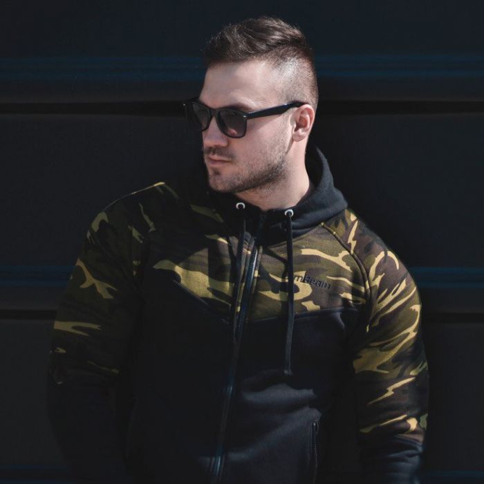 Mikina Camo Green je trendy maskáčová mikina na zips, ktorá nesmie chýbať vo vašom šatníku. Má skvelý strih, ktorý sadne každej postave. Obsahuje nastaviteľnú kapucňu, vrecká, spodný lem a elastické manžety. Mikina Camo Green je vhodná na cvičenie, ale bude sa vám natoľko páčiť, že ju budete používať aj na bežné nosenie.