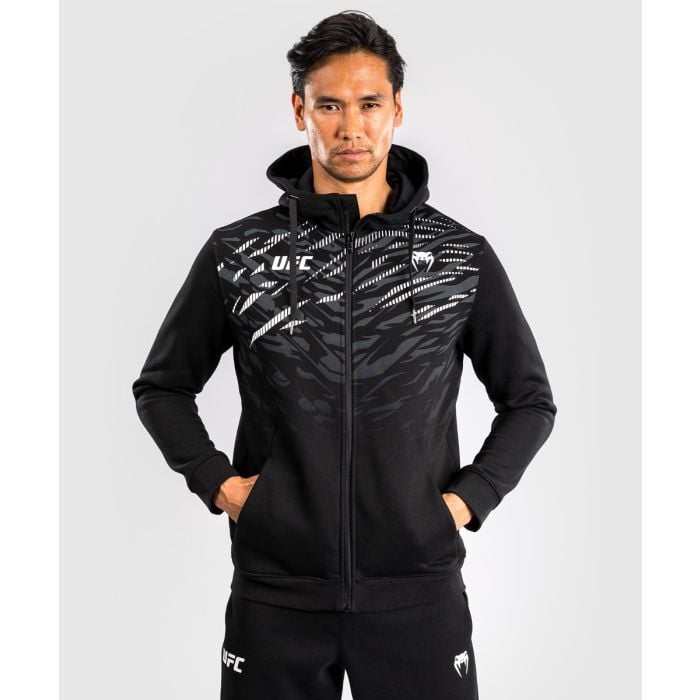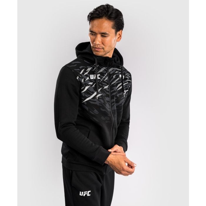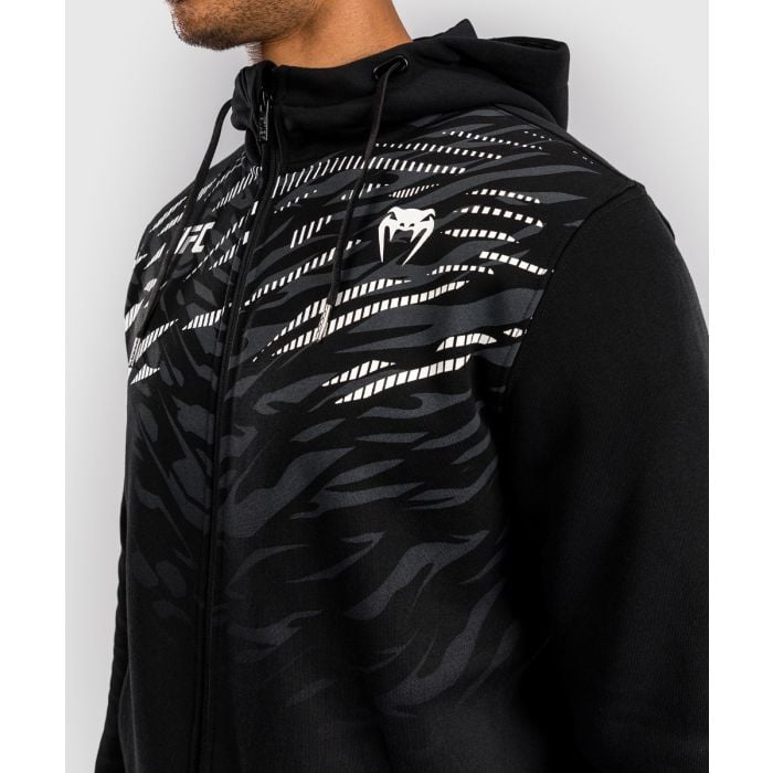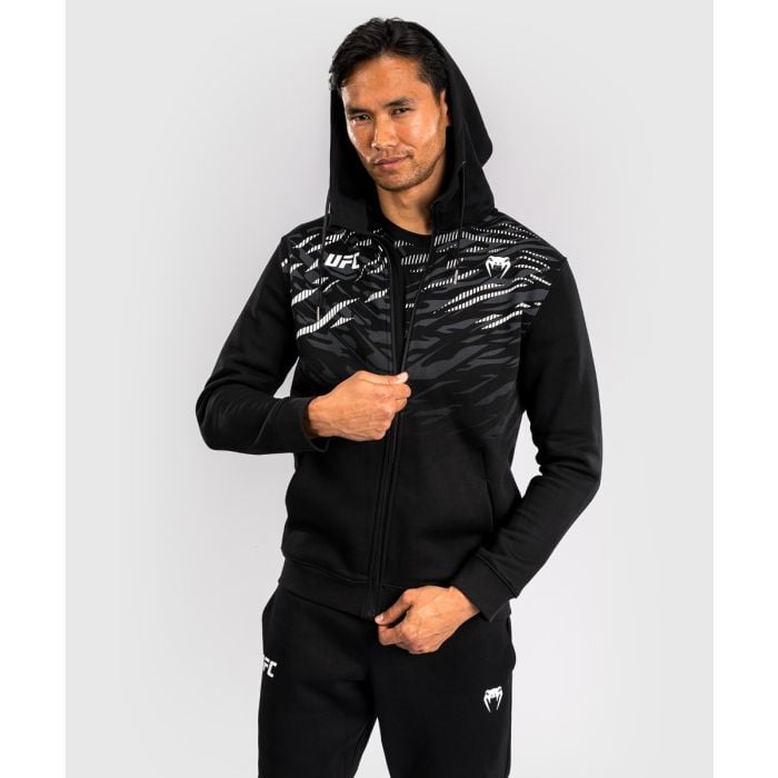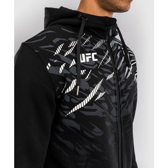 Mikina so zipsom Fight Night je štýlový kúsok z kolekcie UFC Fusion, inšpirovaný módou odvážnych UFC atlétov. Má moderný dizajn s dynamickou zvieracou potlačou, ktorá apeluje na inštinkty predátorov s cieľom zvíťaziť v každom boji. K tomu pridáva praktické bočné vrecká, spoľahlivé zipsovanie a kapucňu so sťahovateľnou šnúrkou. Poteší fighterov aj fanúšikov bojových športov.
