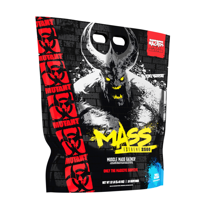 Mutant Mass Extreme je našliapaný gainer obsahujúci vysokú dávku kvalitných sacharidov. Okrem toho v zložení nechýba ani vitamín C a vybrané minerálne látky. Jedna dávka má 1070 kcal, takže je ideálny pre ľudí, ktorí sa snažia zvýšiť príjem kalórií, a to napríklad v objemovej fáze.