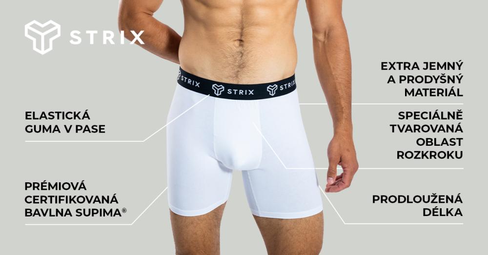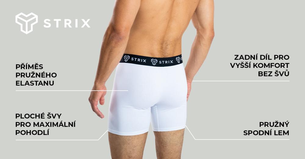 Materiálové zloženie je obohatené o prímes elastanu, ktorý sa postará o to, aby vám tieto boxerky dokonale sedeli. Zároveň sú pružné a doprajú vám maximálnu voľnosť pohybu. Hodí sa tak pre rôzne športové aktivity ako beh, cyklistika, street workout alebo návšteva fitka, ale blažený pocit pohodlia vám doprajú aj pri celodennom sedení v kancelárii či počas iných chvíľ vo voľnom čase. Navyše majú moderný strih a elastický pás s logom STRIX, ktorý vás obopne a zvýrazní vašu mužnú postavu. Zaradte sa medzi elitu vytvorenú okolo značky STRIX a prejavte naplno svoju lásku k aktívnemu životnému štýlu!