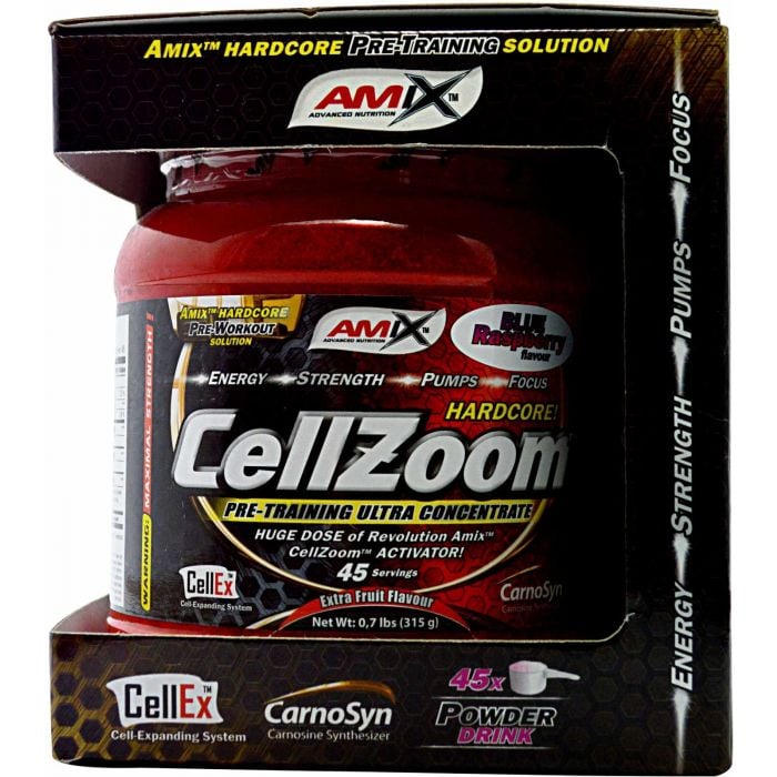 CellZoom Hardcore je perfektná voľba pre všetkých silových aj vytrvalostných športovcov. Obsahuje niekoľko funkčných zmesí, ktoré oceníte pred každým tréningom. Prvou z nich je Amix™ Crea-Premium Infusion, ktorá obsahuje viacero foriem kreatínu, vrátane mikronizovaného kreatín monohydrátu, tri-kreatín malátu a kreatín etyl ester malátu. Ďalšia zmes nesie názov Amix™ CellZoom Activator a obsahuje L-arginín AKG, beta-alanín (CarnoSyn), L-arginín HCl, bezvodý kofeín a DMAE bitartrát. Posledným dielikom tejto unikátnej skladačky je Amix™ Stimulation-Energy Complex, ktorý je bohatý na rastlinné extrakty.