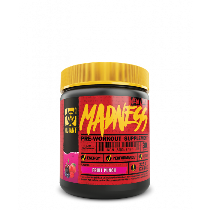 MUTANT MADNESS je predtréningový stimulant, ktorý vás posunie na iný level. Je vytvorený len pre jediný účel, a to vysoko intenzívne tréningy bez kompromisov. Pripravte sa na príval extrémnej energie a nový level výkonu. Postará sa o to koncentrovaná zmes najúčinnejších ingrediencií vo vedecky overených účinných dávkach. Táto prémiová formula je zmesou arginínu, cutrilínu a beta-alanínu, čo môže znamenať jediné, dokonalé napumpovanie, šialenú dávku energie a výdrž počas celého tréningu. Navyše, obsahuje až 330 mg kofeínu z piatich rôznych zdrojov. Mutant Madness má fenomenálnu chuť.