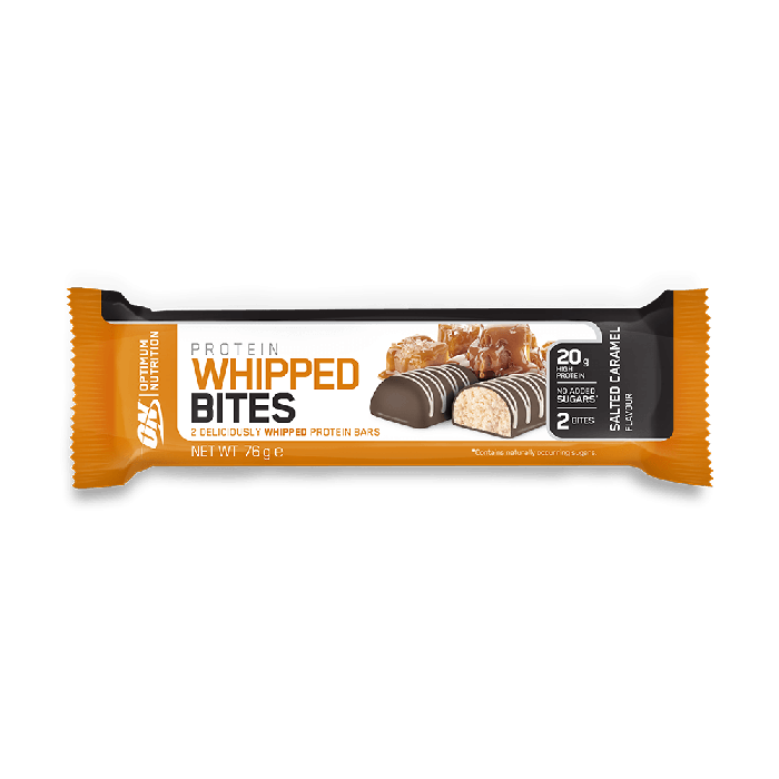 Protein Whipped Bites sú dve lahodné mini proteínové tyčinky obalené v zmyselnej čokoládovej poleve. S obsahom až 20 g proteínu, bez pridaného cukru a so skvelou chuťou sa stanú vašou obľúbenou proteínovou maškrtou. Navyše v nich nájdete aj vlákninu a vybrať si môžete z lahodných príchutí.