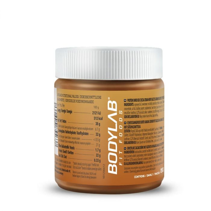 Proteínová nátierka so slaným karamelom a čokoládou je zdravá alternatíva ku klasickým sladkým nátierkam, ktorá uspokojí všetkých maškrtníkov. Spojenie slaného karamelu a čokolády si vychutnáte najlepšie na pečive, ovsenej kaši alebo samostatne na lyžičke. Aby ste doplnili telu všetky potrebné makroživiny, nájdete v zložení navyše aj srvátkový koncentrát, ktorý zvyšuje celkový podiel bielkovín až na 22 g. Proteínová nátierka neobsahuje žiadny palmový olej, lepok ani pridaný cukor. Bez výčitiek si tak na nej môžete pochutnať, kedykoľvek dostanete chuť na niečo dobré.