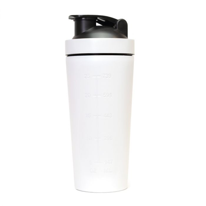Šejker Steel White s objemom 750 ml je vyrobený z nehrdzavejúcej ocele. Oproti plastovému šejkru je preto odolnejší a hygienickejší. Navyše, nezadržiava nepríjemný pach a má ľahkú hmotnosť. Šejker je uzatvárateľný na závit a výborne slúži na rozmiešanie vašich doplnkov výživy.