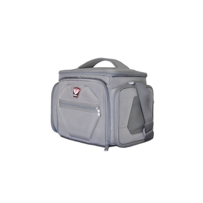 Športová taška na jedlo The Shield Steel Gray s pekným dizajom, inovatívnymi funkciami a materiálom najvyššej kvality. Je ľahká, prenosná, vyrobená z pevného polyesterového nylonu. Obsahuje 3 veľké boxy na hlavné jedlo, 2 chladiace gély, dávkovač na vitamíny, suplementy a proteínové nápoje, 2 inteligentné vrecká na fľašu, proteínové tyčinky a ovocie. Udrží vaše jedlo čerstvé až 8 hodín