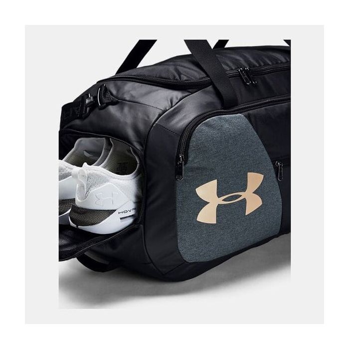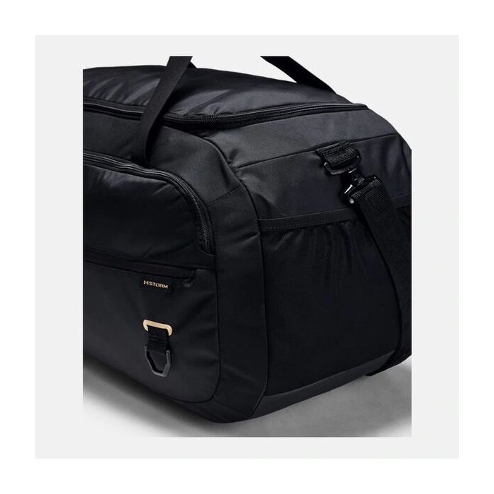 Športová taška Undeniable Duffle 4.0 SM Black je priestorná taška do fitka s vodeodolnou úpravou Storm1 a tuhými výstuhami na dne a bokoch. Obsahuje priestorné predné vrecko na zips, bočné vrecko na zips s integrovaným vreckom napríklad na obuv a vnútorné dokladové vrecko. Má komfortné rúčky na nosenie a dlhý nastaviteľný popruh cez rameno.