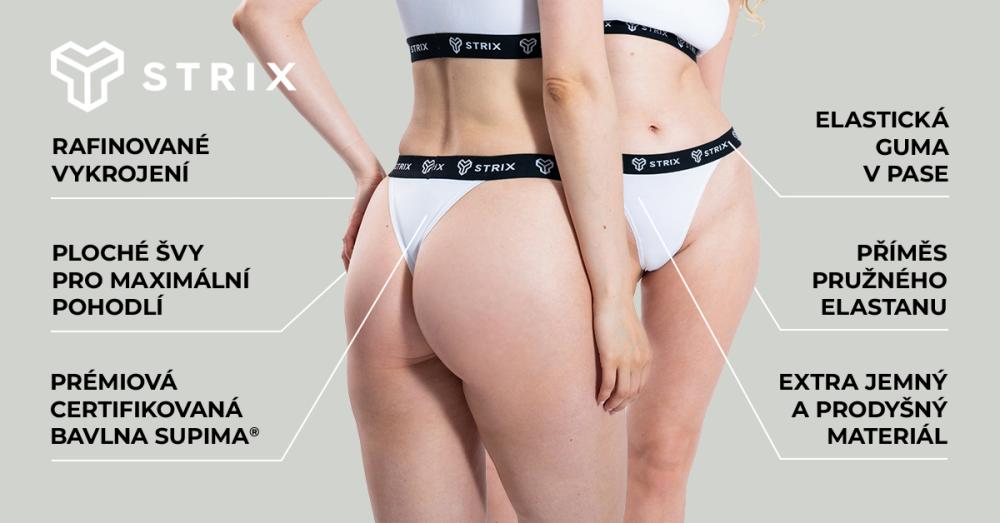Okrem kvalitného materiálu na vás urobia dojem aj svojím originálnym športovým dizajnom. Sú vysoké, atraktívne vykrojené a okolo pása ich drží štýlový elastický lem, ktorý zdobí logo značky STRIX. Tanga zvýraznia vaše krivky a navyše sa hodia aj pod priliehavé kúsky, keďže sú spod oblečenia viditeľné len minimálne. Kľudne si ich preto oblečte pod legíny, priliehavé šortky alebo úzku sukňu. Rovnako sa hodia aj pod bedrové džínsy alebo tepláky, čím vytvoríte moderný outfit s mierne vyčnievajúcim lemom spodnej bielizne.