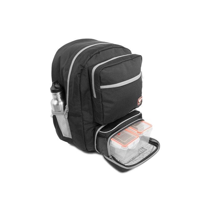 Transporter Backpack Black je batoh do fitka, na jedlo či na cesty, ktorý vám poslúži ako výborný odkladací priestor. Obsahuje množstvo priehradok, či už na váš laptop (17"), zvlášť na oblečenie, na šejker s vašim proteínom alebo vodou. A veľa veľa ďalších šikovných priehradok na všetky vaše drobnosti. Transporter Backpack obsahuje the box SM (kde sú dve plastové krabičky na jedlo) - tento box možno vyberať a používať samostatne. Je vyrobený z 1000D polyesteru a má rozmery 43,8 cm (výška) x 31,7 cm (šírka) x 25,4 cm (hĺbka).