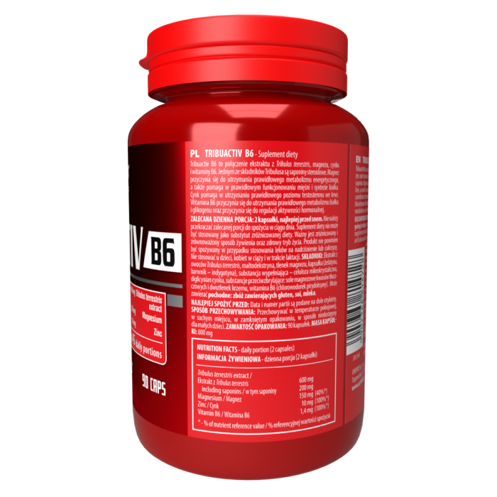 Tribuactiv B6 je účinná formula, ktorá kombinuje zinok, horčík a vitamín B6 s rastlinným extraktom z rastliny Tribulus Terrestris. Vďaka vybranému zloženiu na čele so zinkom patrí medzi obľúbené testoboostery využívané športovcami a ďalšími aktívnymi mužmi.
