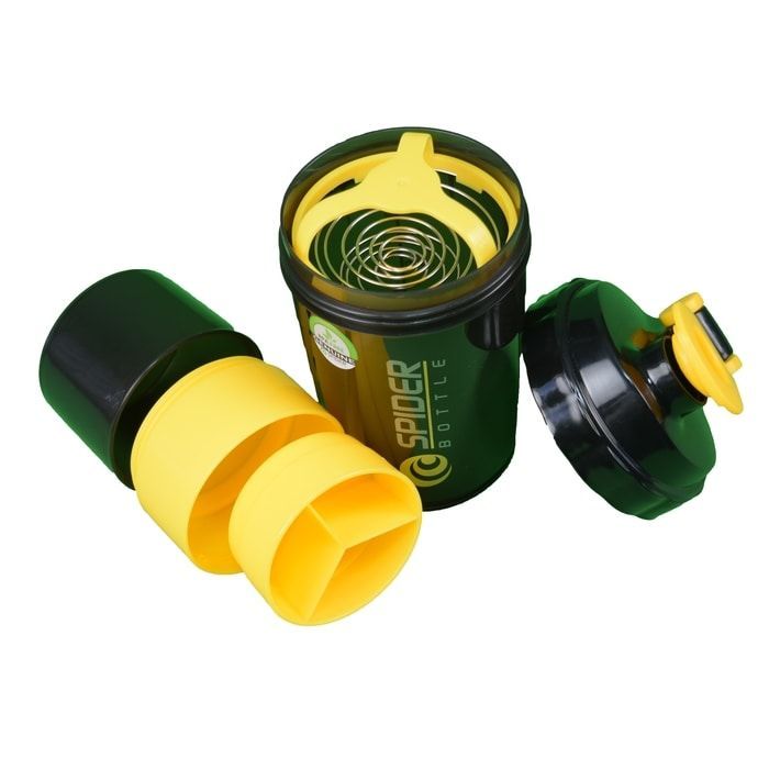 Šejker Spider Bottle je viacdielny šejker s objemom 700 ml, ktorý pozostáva z troch dielov na miešanie práškových doplnkov výživy a tekutín, na tablety, kapsule a práškové suplementy. Obsahuje klasický závit a špirálu na dokonalé rozmiešavanie vašich obľúbených suplementov. Tento kvalitný trojdielny šejker je dostupný hneď v niekoľkých farebných kombináciách.