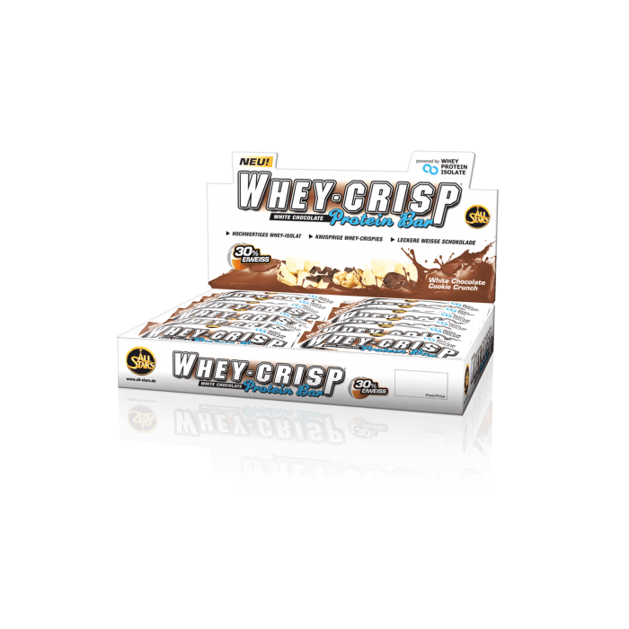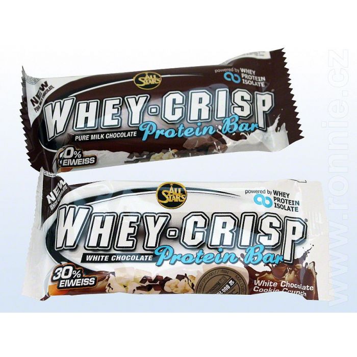 Whey-Crisp Protein Bar je absolútne chutná proteínová tyčinka, ktorá obsahuje bielkoviny výhradne zo srvátky, čím sa zaraďuje na špicu v tejto kategórii. Tyčinka obsahuje 30% čistého srvátkového proteínového izolátu a je poliata lahodnou mliečnou čokoládou. Je ideálnou voľbou ak sa nachádzate na cestách, v práci, v škole, alebo na porade. Vyskúšajte zdravé maškrtenie.