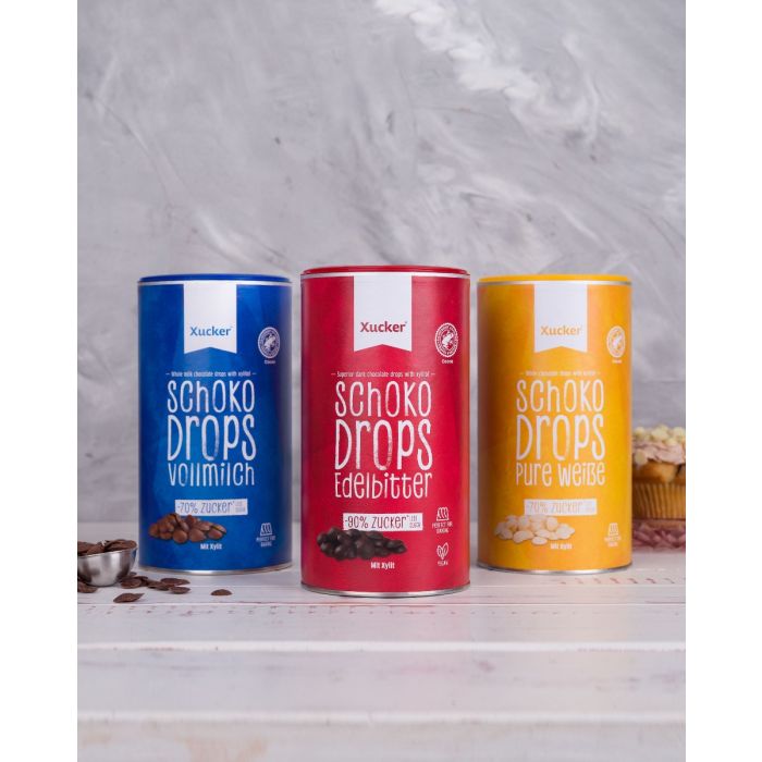 Whole milk Chocolate Drops sú kúsky mliečnej čokolády bez pridaného cukru, ktoré sú sladené len xylitolom. Čokoládové kúsky sú ideálne na pečenie cookies, muffinov, koláčov, výrobu čokoládových poliev, domáceho müsli, ale hodia sa aj na ochutenie kaše alebo jogurtu.