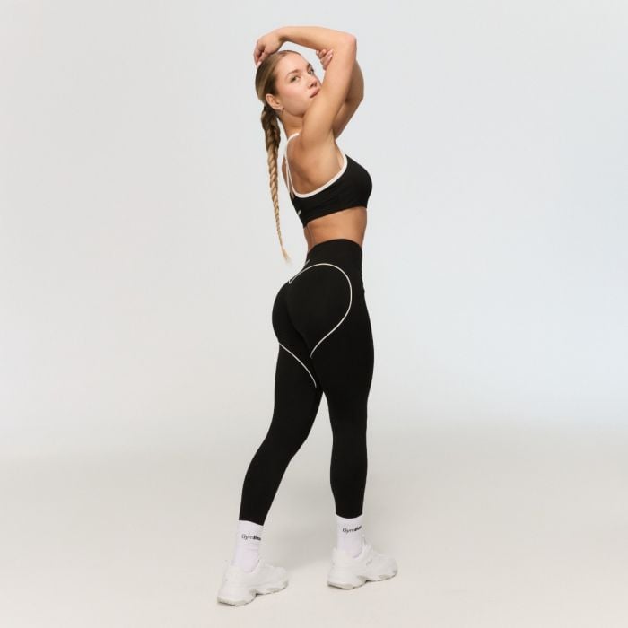 Tento športový kúsok sa vyznačuje dlhým strihom, ktorý sa dokonale prispôsobí vašej postave. Vysoký pás zaručuje, že oblečenie spoľahlivo drží na svojom mieste a nešmýka sa ani pri hlbokých drepoch. Konštrukcia bez predného švu a bez vreciek zabezpečuje maximálny komfort bez nepríjemného rezu alebo treniu. Úplnou dominantou je veľké kontrastné lemovanie v tvare srdca na zadnej strane tvorené tenkými bielymi pruhmi. Tento detail opticky tvaruje pozadie a dokonale zvýrazní vaše prirodzené krivky.